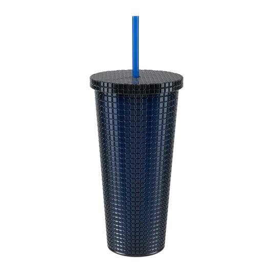 Cool Gear 3-Pack 23 oz Jem Chiller with Reusable Straw | Dishwasher Safe, Spillproof, Double-Wall Insulated Travel Tumbler | Trendy, Textured Design - Blueberry Pack