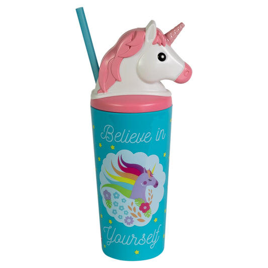 Cool Gear 4-Pack 18 oz Fun Toppers Unicorn Character Lid Tumblers with straw included | Durable, Reusable Water Bottle Gift for Kids, Adults