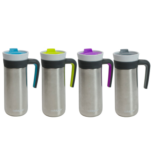 COOL GEAR 4-Pack 12 oz Stainless Steel Kona Triple Insulated Travel Mug with Handle | Great For Coffee, Tea, Matcha and Keeping Drinks Hot