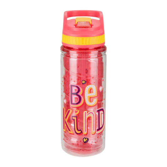 Cool Gear 2-Pack 16 oz Kid's Twist Water Bottle with Double Wall, Sipper Lid and Finger Loop Cap with Printed Design | Great for School, Sports, Outdoors, and More - Be Kind/ Flowers